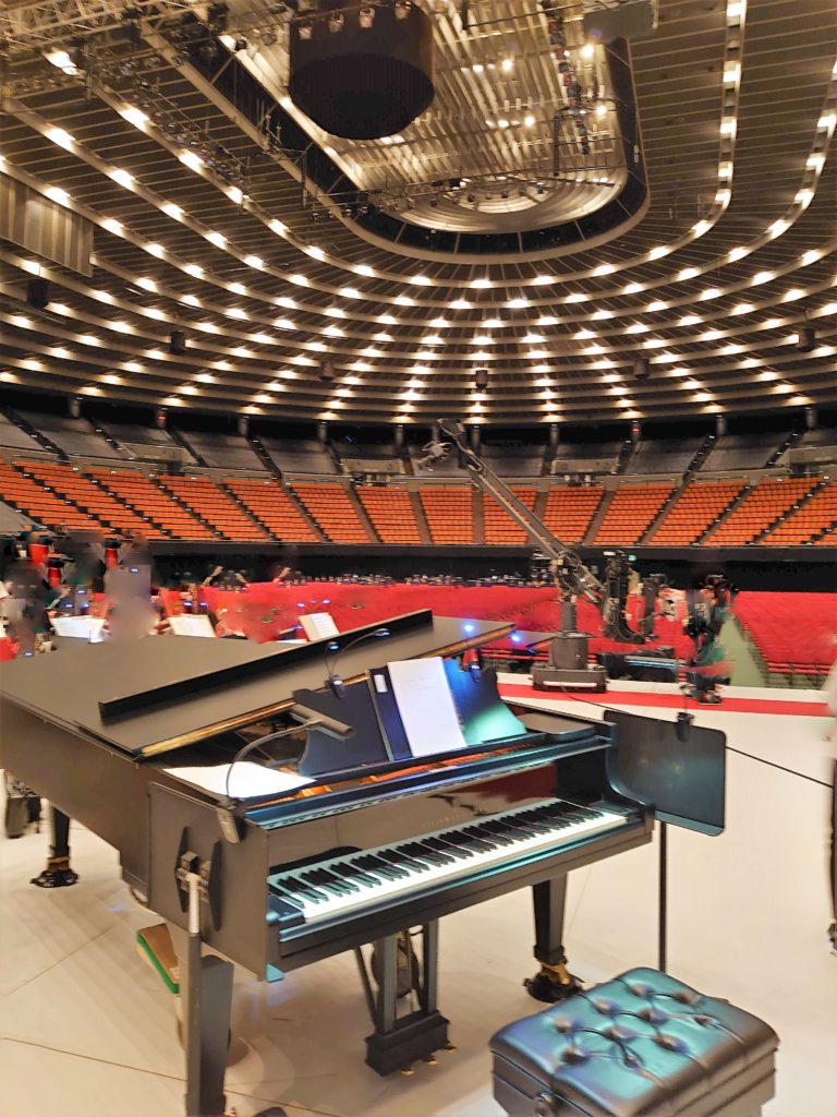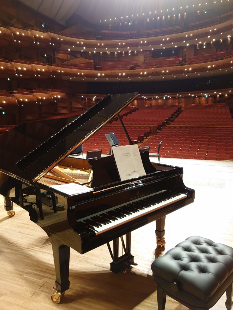 ピアノの位置は大体いつも舞台下手の後ろ、オーケストラの一番後ろで弾いていることが大半です。