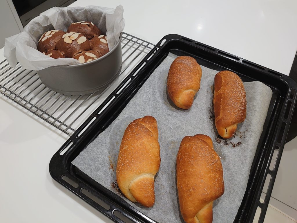 この冬はフォカッチャ、フルーツ・カスタードパン、塩パン、チョコちぎりパン、蒸しパン、そしてソフト・フランスパンなどを作りました。