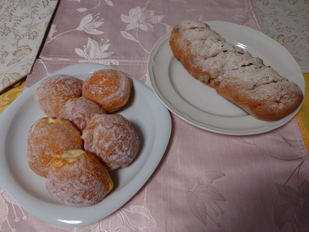 ヘルシーピロシキ、チョココルネ、いちぢくとクルミの全粒粉パン、そして生ドーナツを作りました。