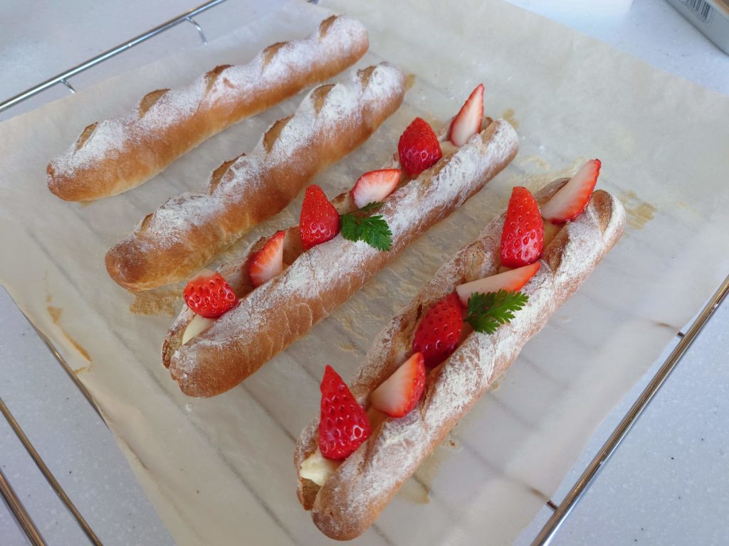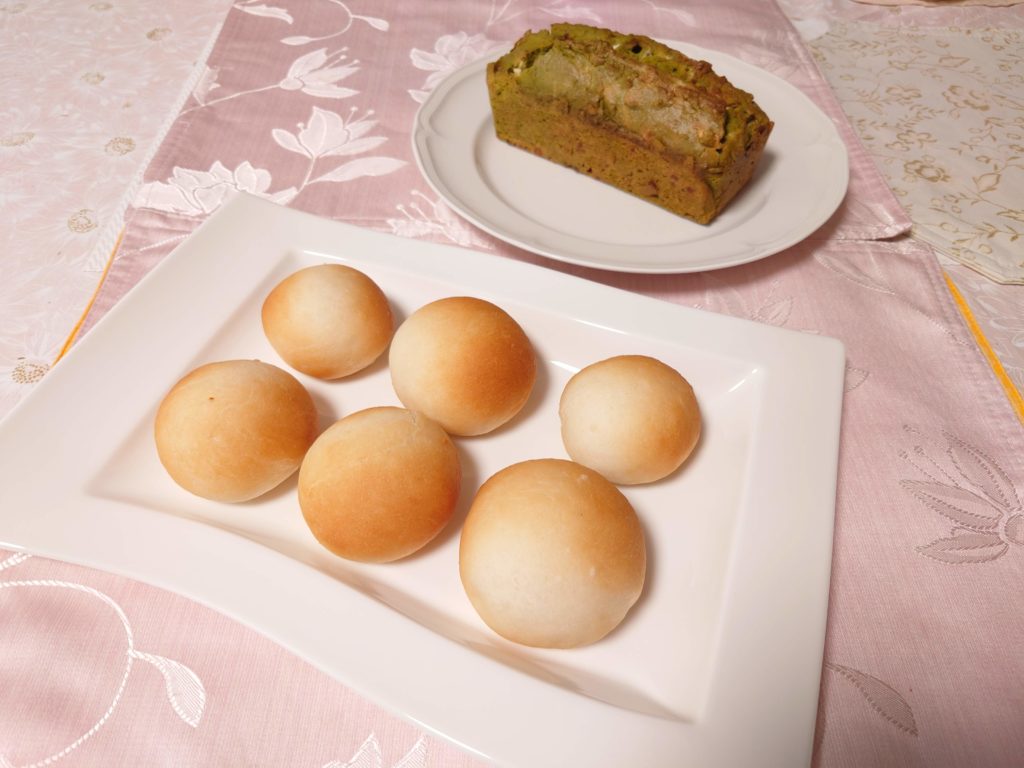 今年春のパンのレッスンでは、いちごのミルクパン、フロマージュ・カスタードパン、たらもパン、そして米粉を使った丸パン、抹茶とホワイトチョコのンパウンドケーキ、ミニ食パン、ブルーベリー・マフィンを作りました。