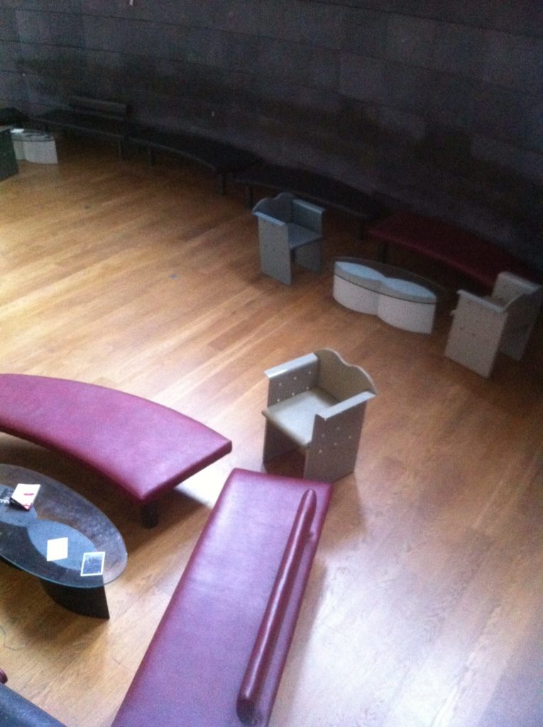 何やら大きな撮影機材をもった人たち、しかも日本人のスタッフさん達が階下の広いソファースペースを照らしている..