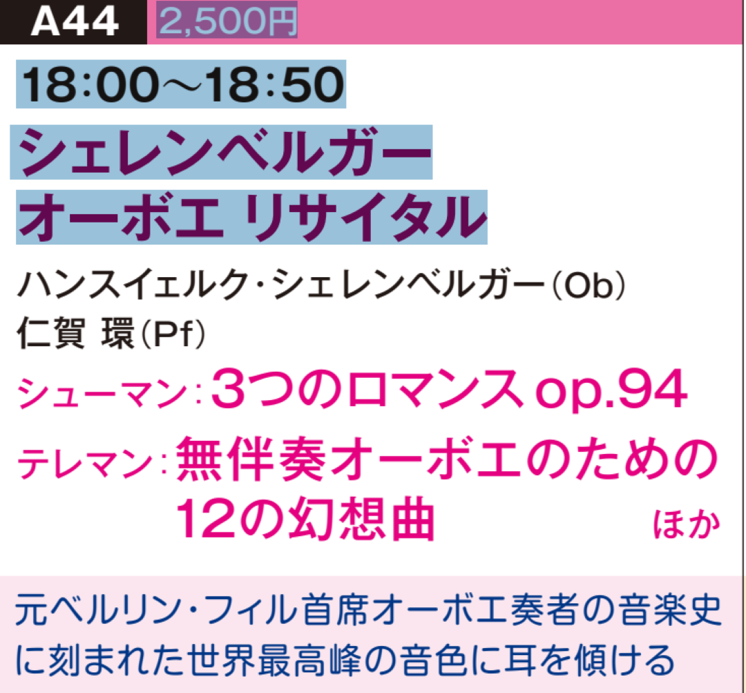 ハンスイェルク・シェレンベルガーさん(元ベルリン・フィル 首席オーボエ奏者、現在は指揮者としてもご活躍)とコンサートで共演します。