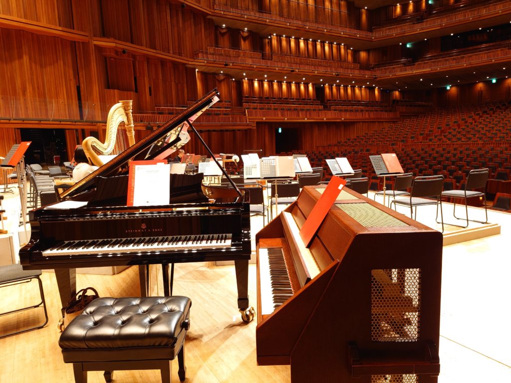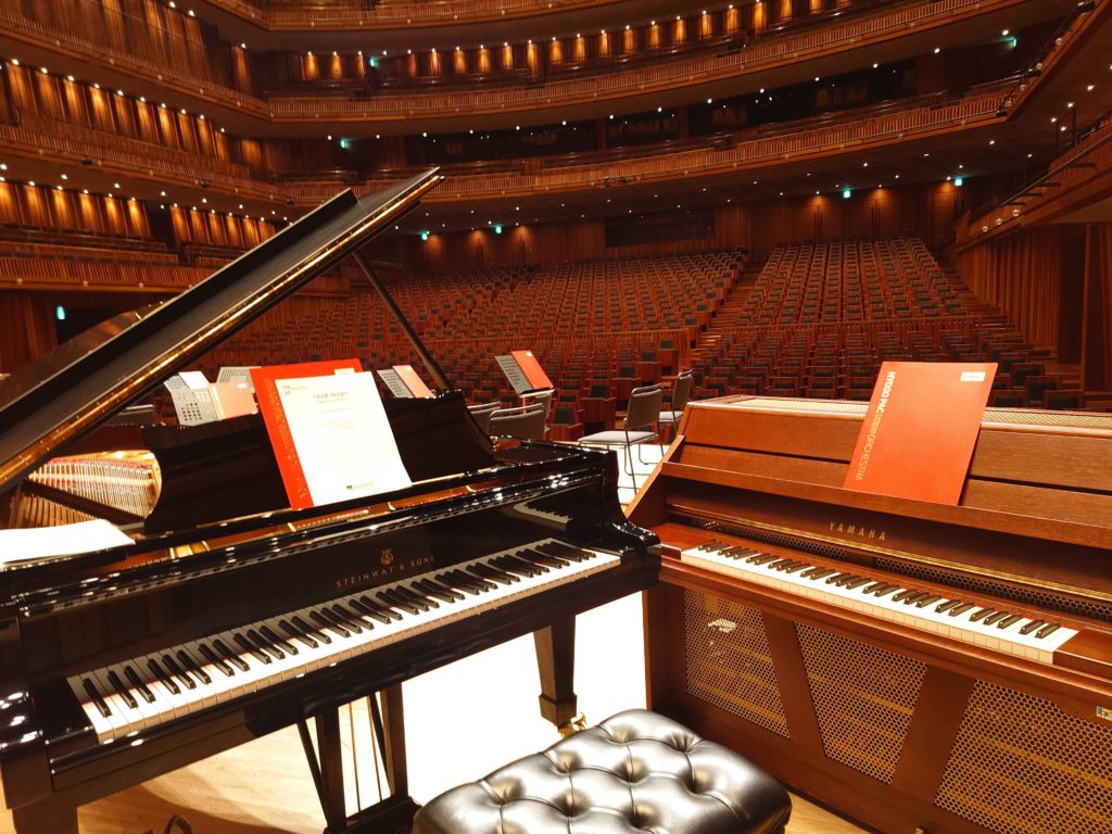 しっかりとした体幹、かつ身軽でないとできない早業、オケ中ピアニストの瞬間移動です。