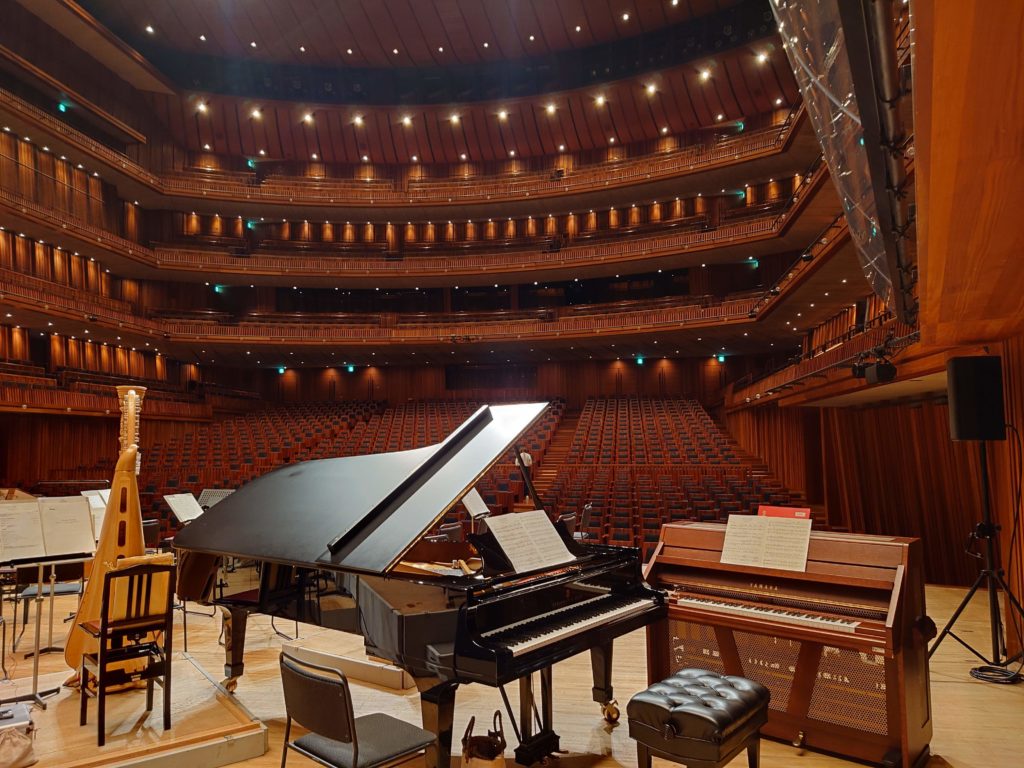 コンサート用の大きな椅子とはいえ、いつもはピアノの真ん中に置く椅子を少し右側に寄せるので低音を弾くときに落ちないように?!少し気を付けていたり..(笑)