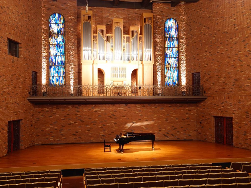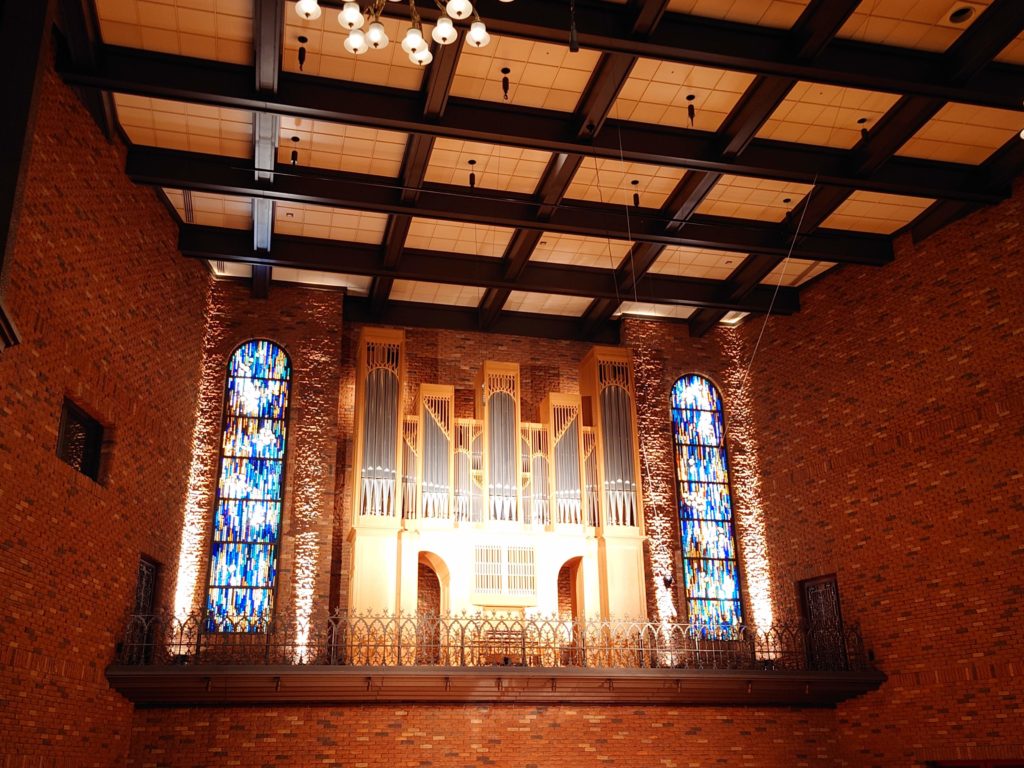 Vega Hall はパイプオルガンと美しいステンドグラスがある、レンガ調で趣きのあるホールです。