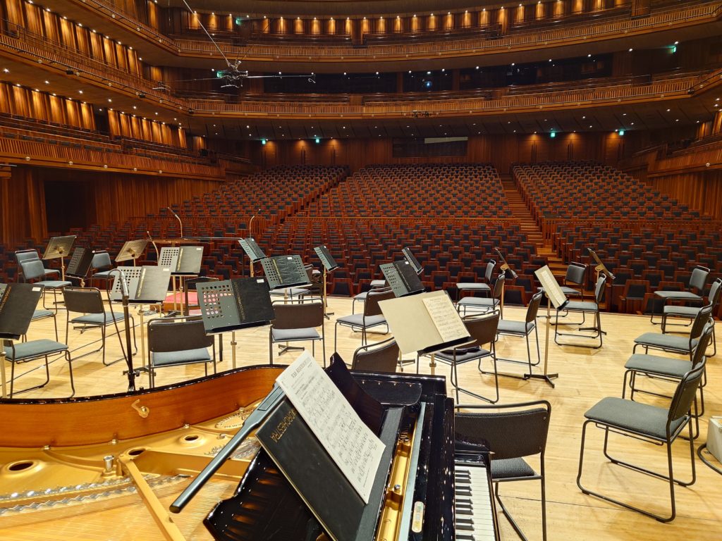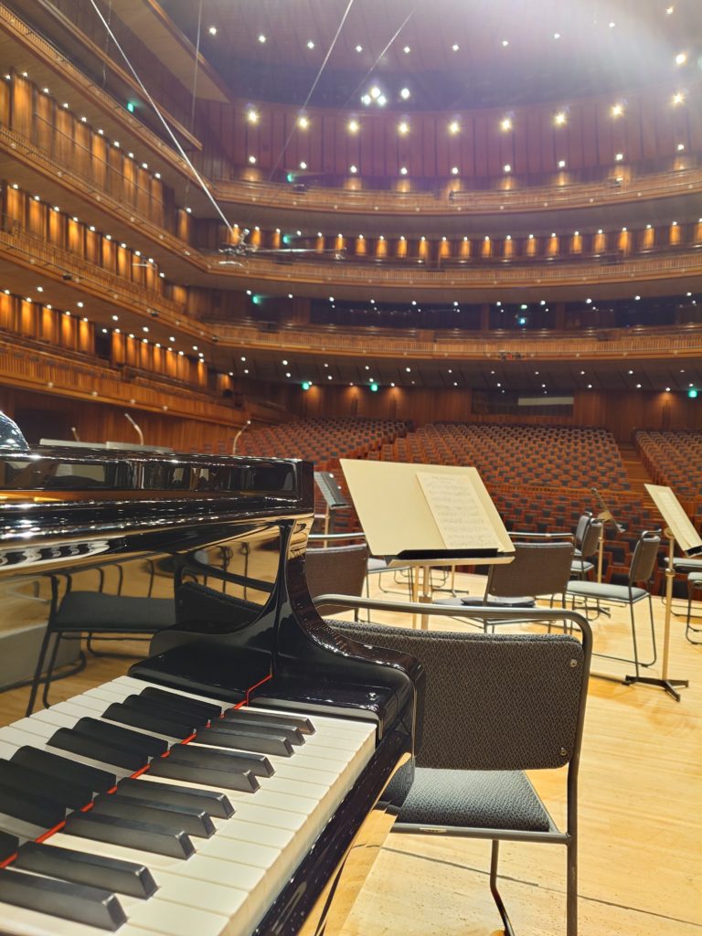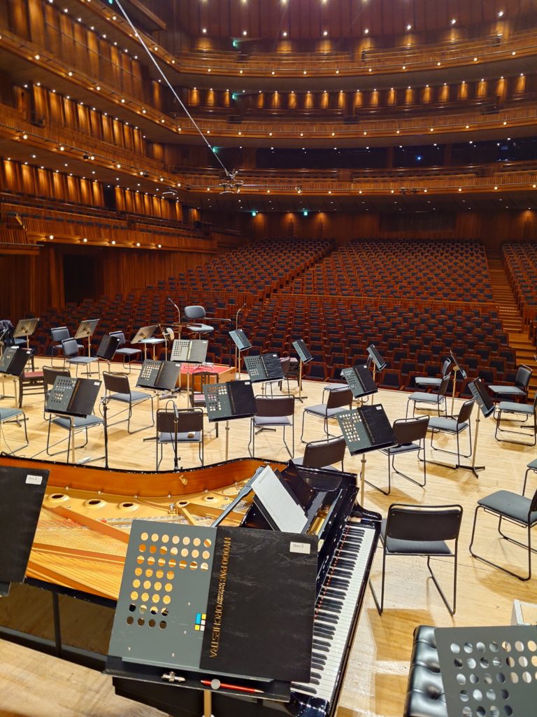 ピアノの屋根-反響板もなく、フルート、オーボエと同じ並びだったので木管楽器の方達が正面に見えて新鮮でした。