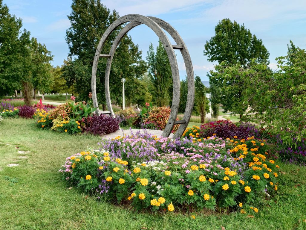 大きなかわいいタコトピアリー(立体花壇)のお出迎え..