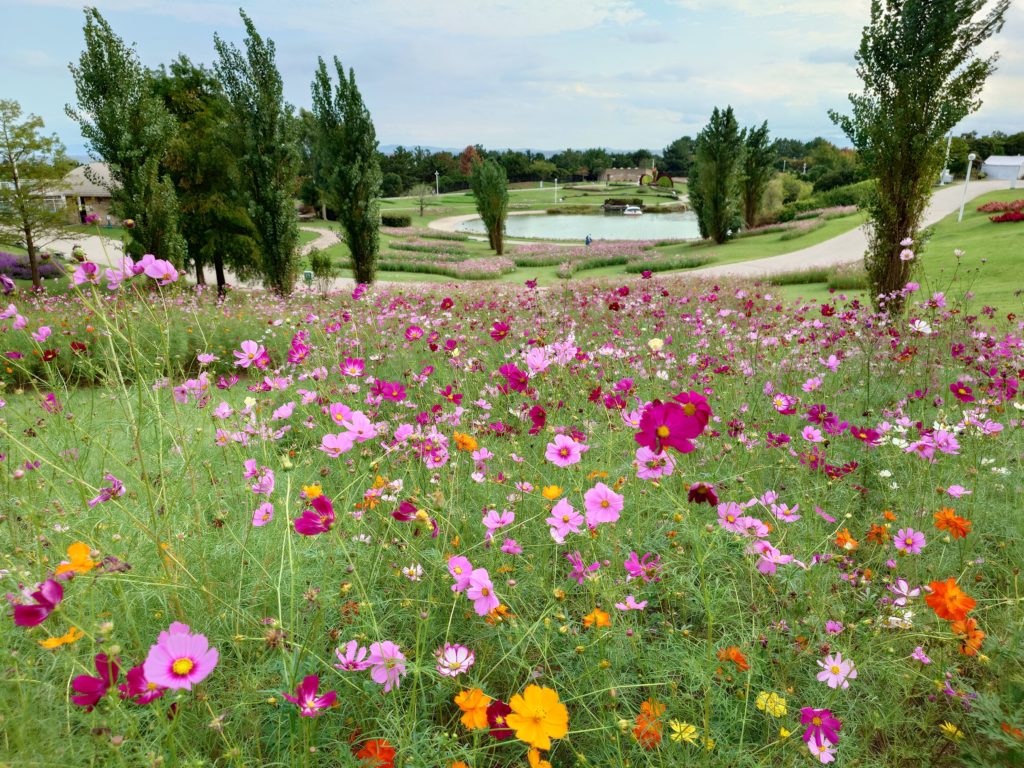 コスモスや赤サルビアetcの🪻🌺色とりどりで広大なお花畑‥