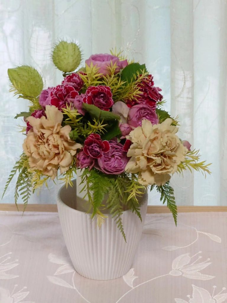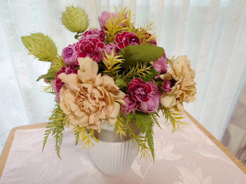 ローズ色のスプレーバラ🌹,アンティークな色のカーネーションetc..