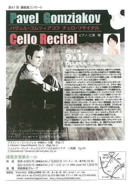 🎵Cellist, Pavel さんと私は2017年9月に和歌山のConcertで Duo共演させて頂いたことがあります.