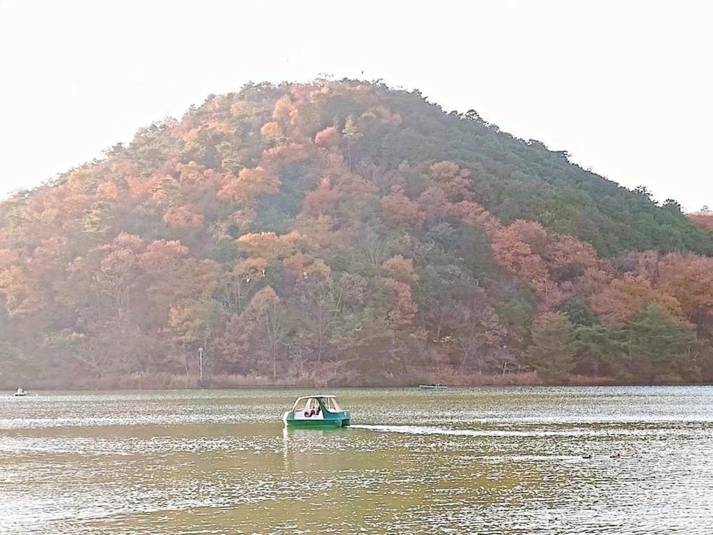 🍁池の周り1.5kmを歩き,色々な角度から楽しみました。