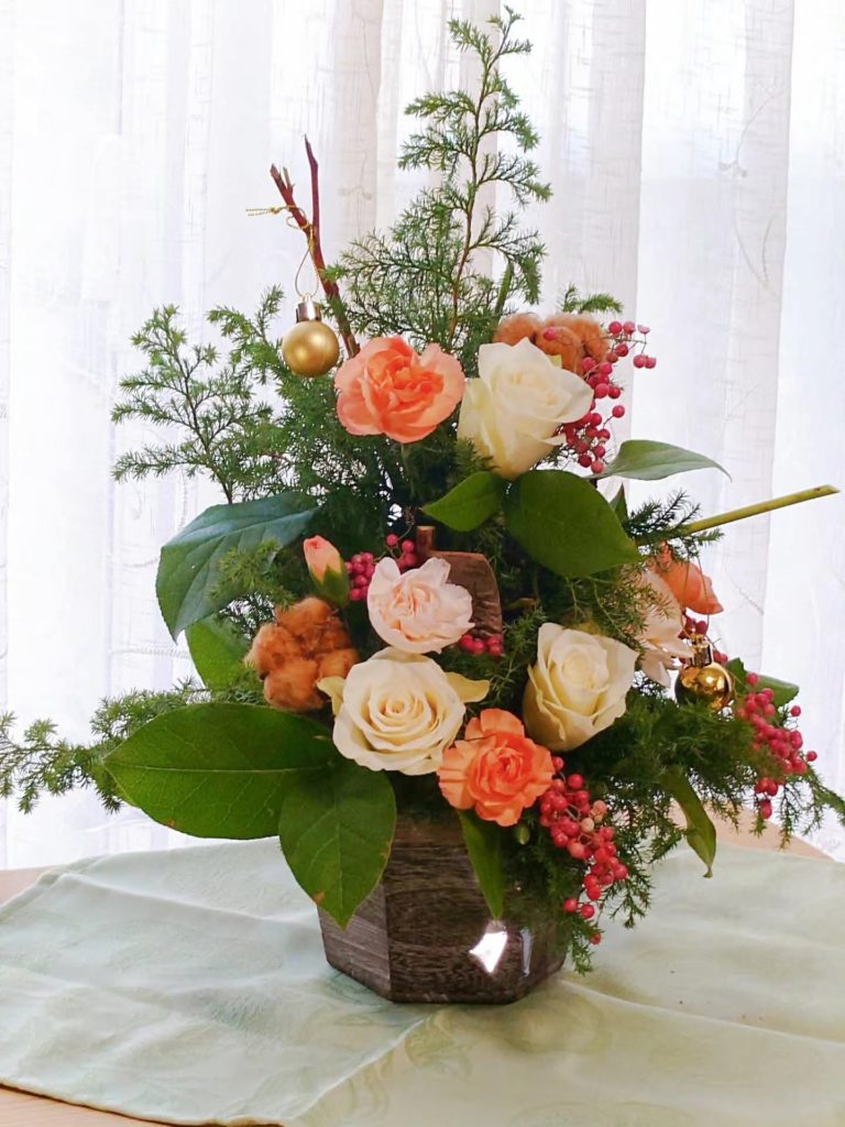 白いバラ🤍🌹とオレンジ色のカーネーション,