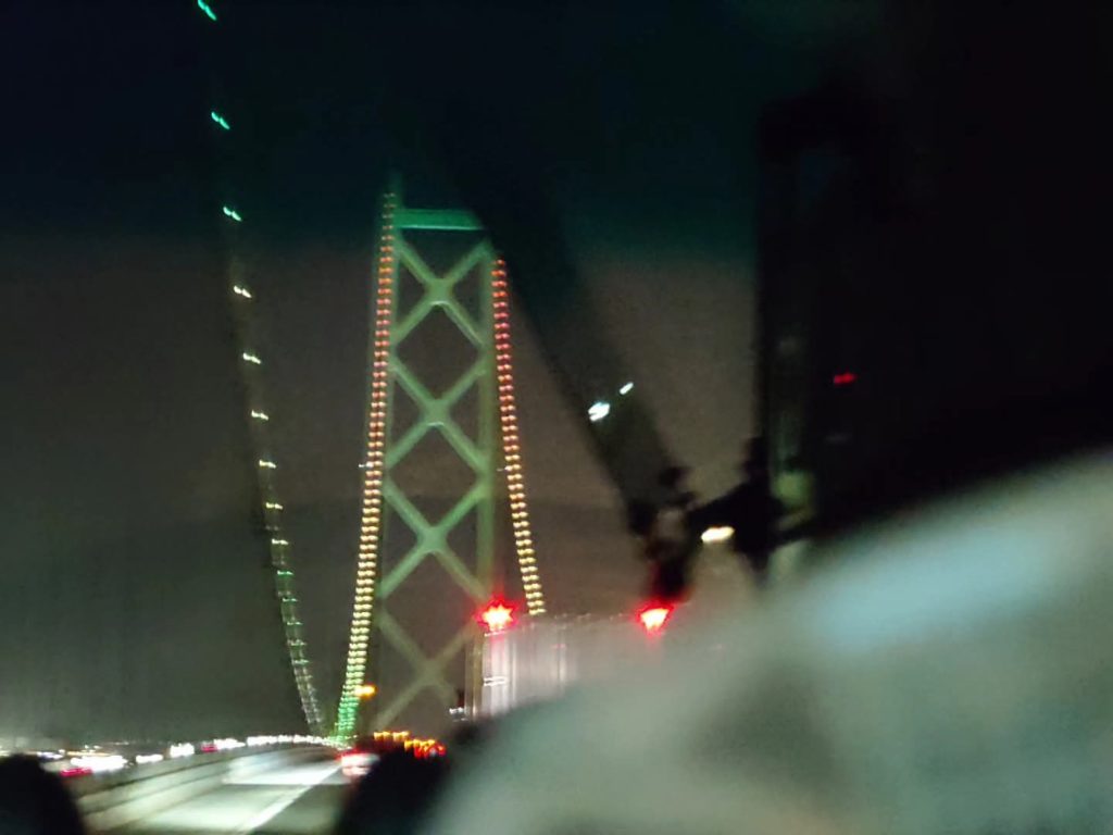 道中,明石海峡大橋のライトアップもきれいでした。