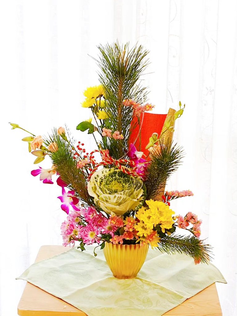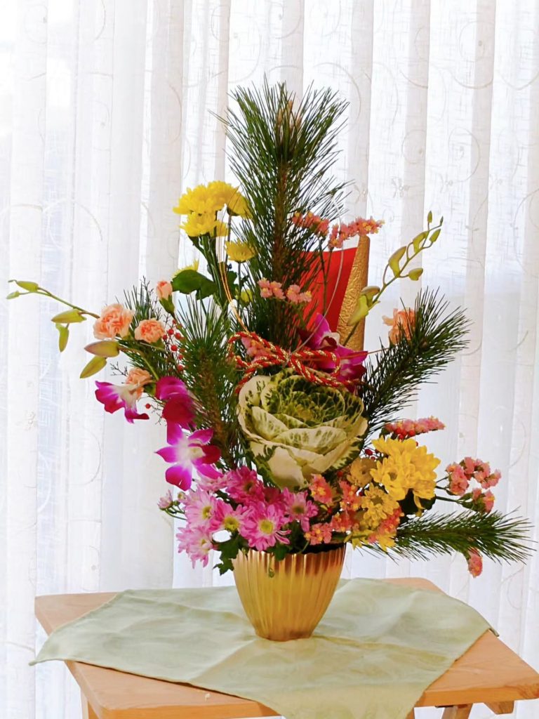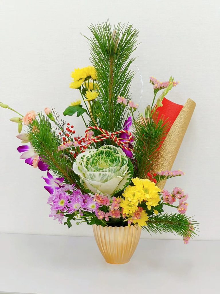 🎍お正月のフラワー·アレンジメントを,年末のレッスンで作りました。