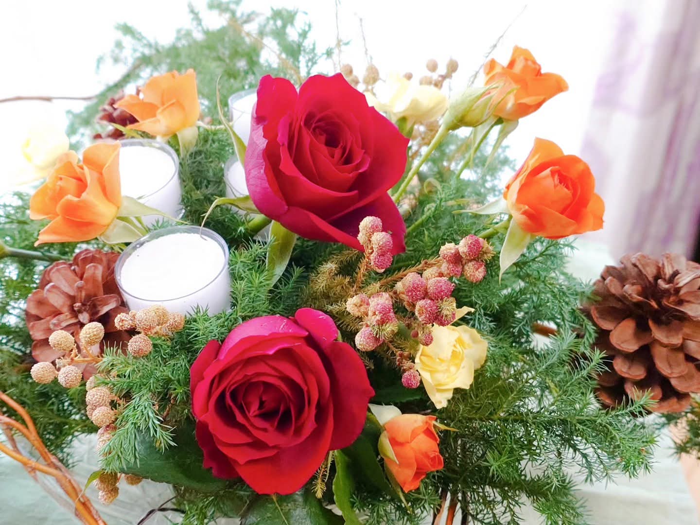 早いものでもう12月,クリスマスらしいフラワー·アレンジメント